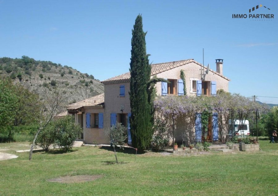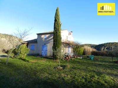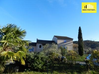 Villa en Ardèche Sud construit en 1997 en très bon état. Trois chambres à coucher, garage, chauffage centrale, double vitrage et volets, portail électrique, living avec feu ouvert et accès sur Terrasse.Pouvant très bien servir comme résidence secondaire avec son entourement calme et son jardin très privé avec la possibilité d'installer une piscine dans le jardin. La maison est proche des commerces. La coquette villa de construction tradionelle est située sur environ 2800m² avec possibilité d' acquérir terrain mitoyen constructible d'environ 2000m2 (Prix de 90.000 €).